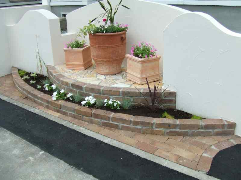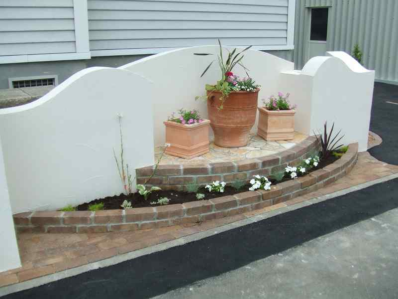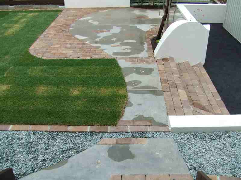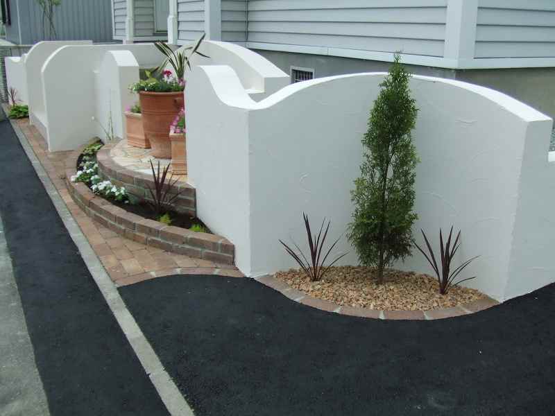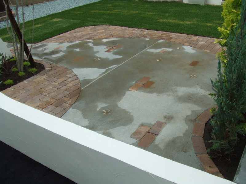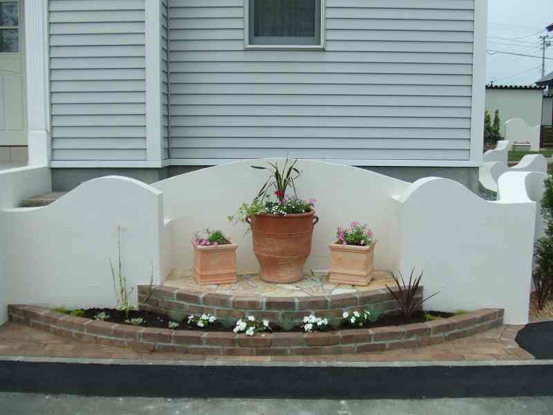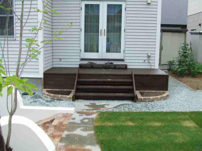 距離が長い堀にはウェーブをふんだんに取り入れました。ウェーブが入り立面的な視点は面白味が増しました。庭の外側も植栽とウッドフェンスにより閉塞感が軽減されています。