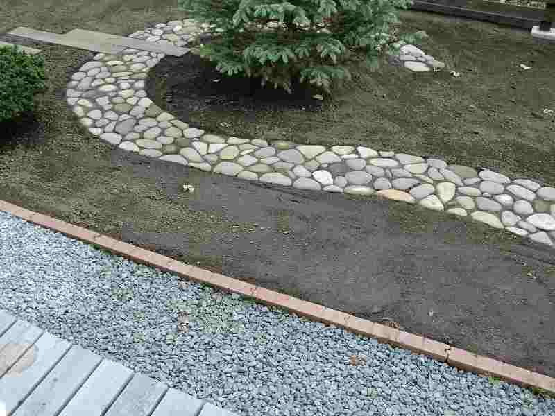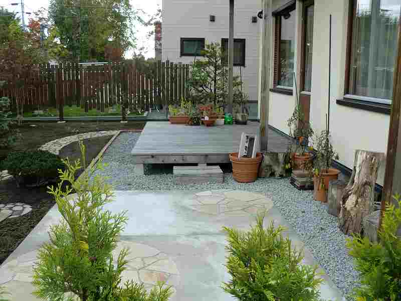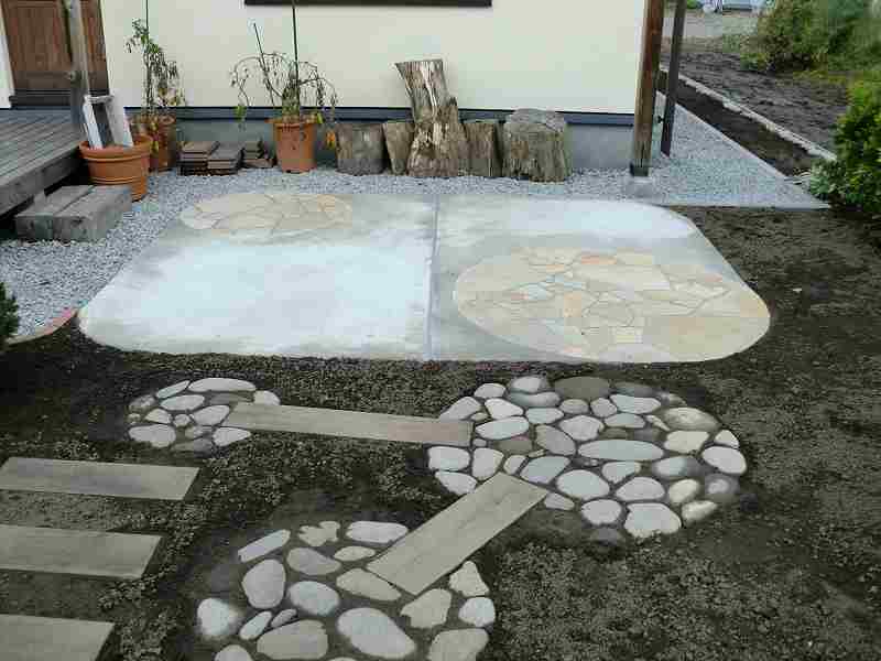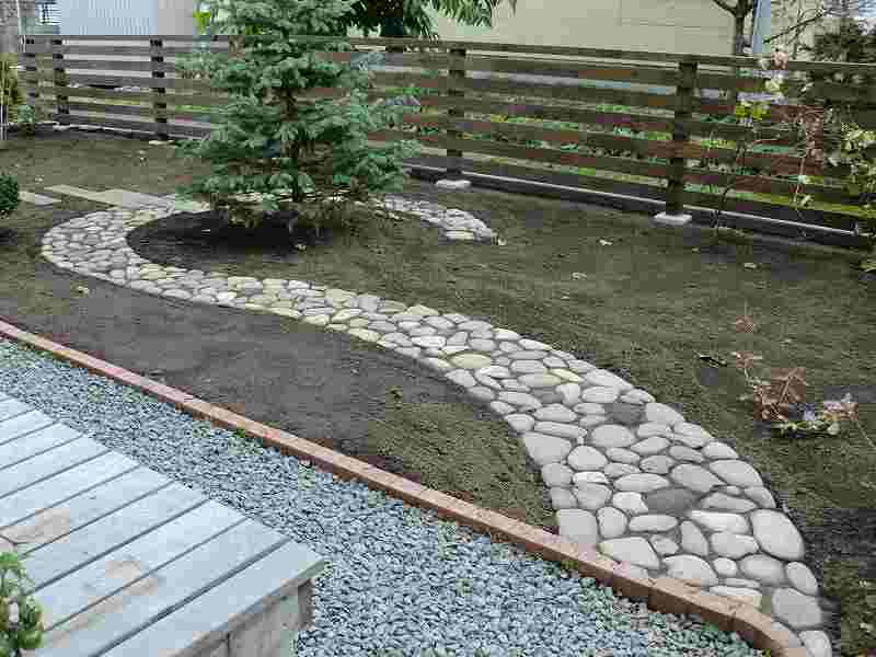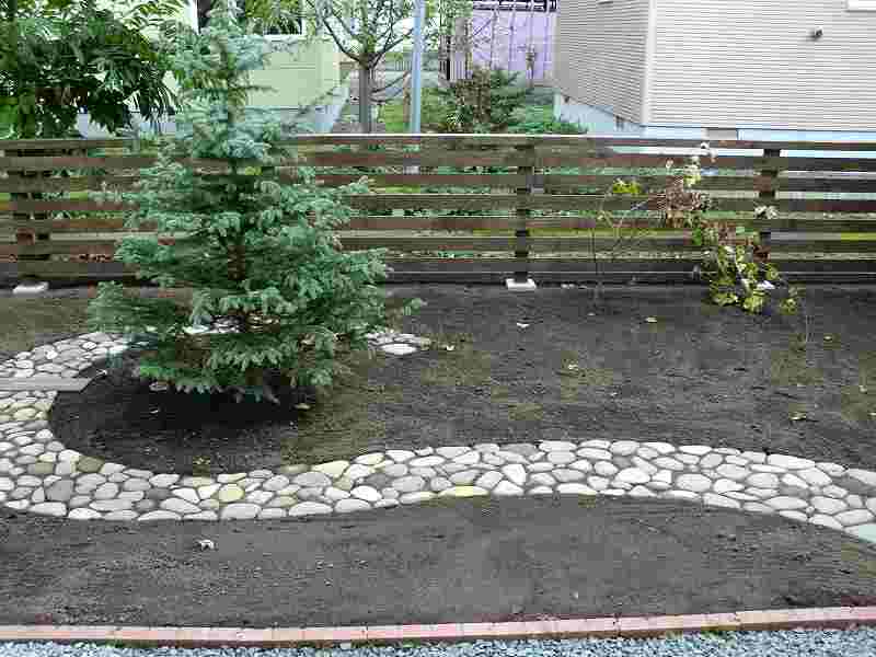 現地で出た玉石に少しプラスして、庭の中に取り入れました。玉石の良さを生かし、シックな庭に仕上がりました。