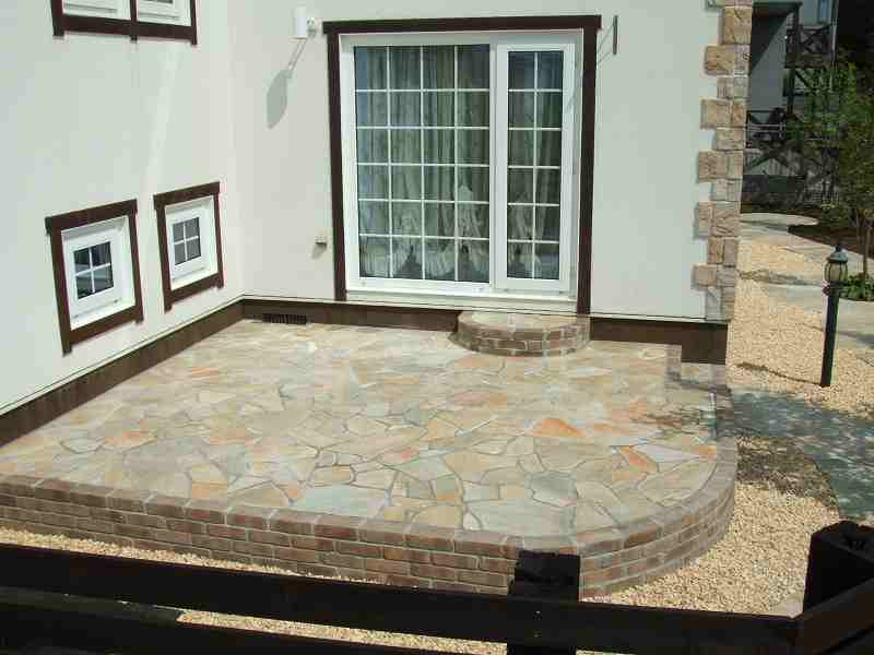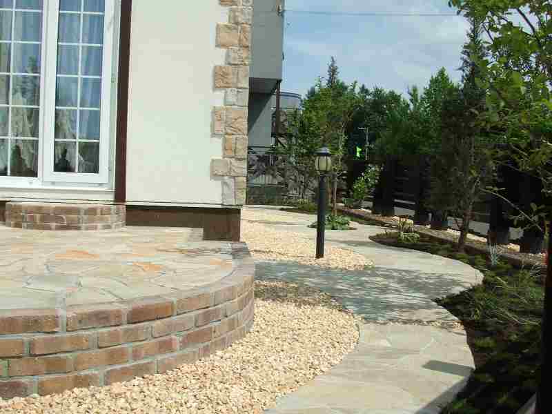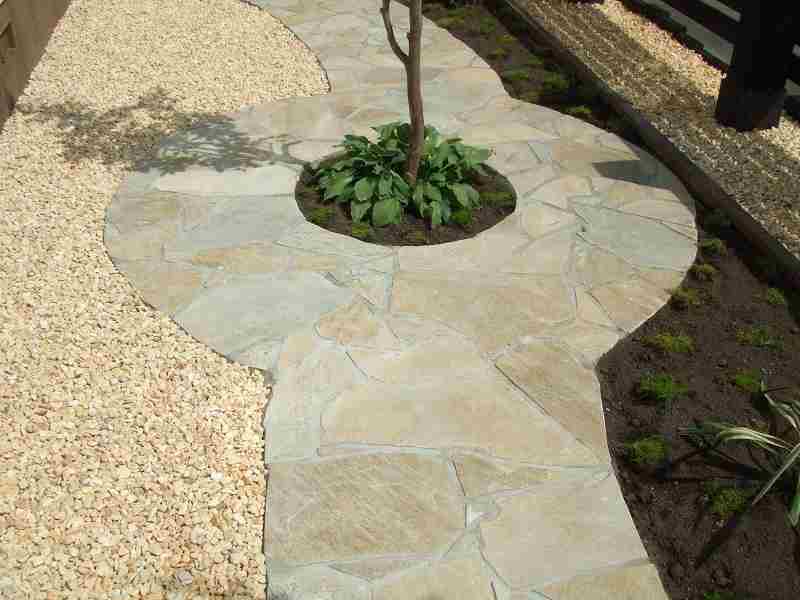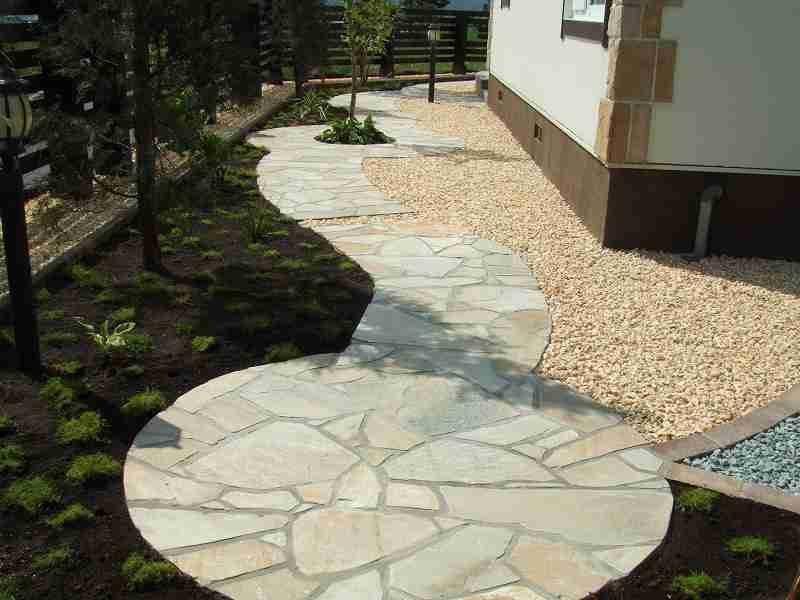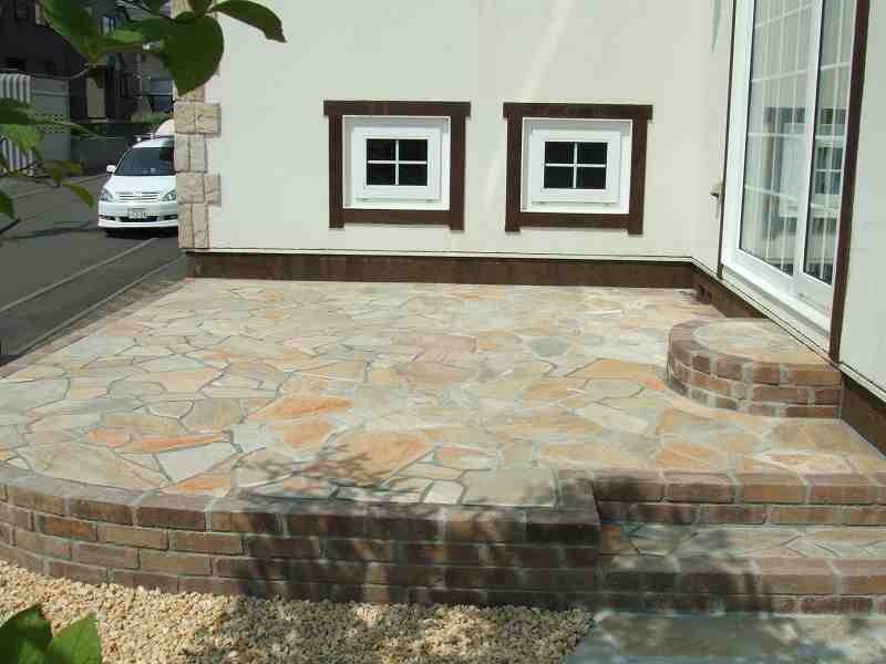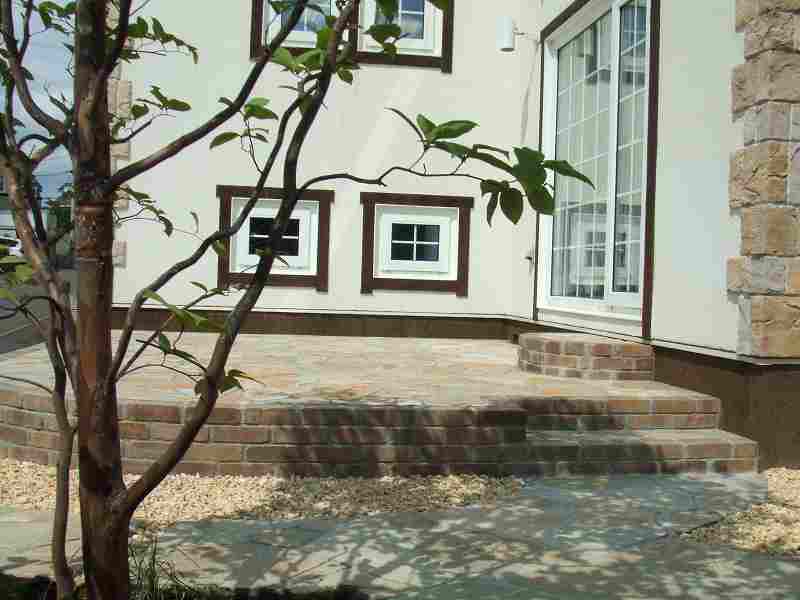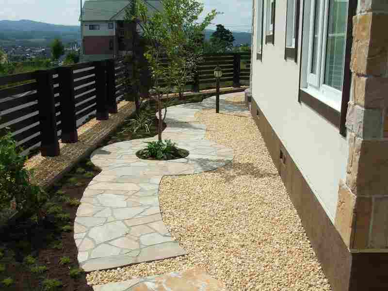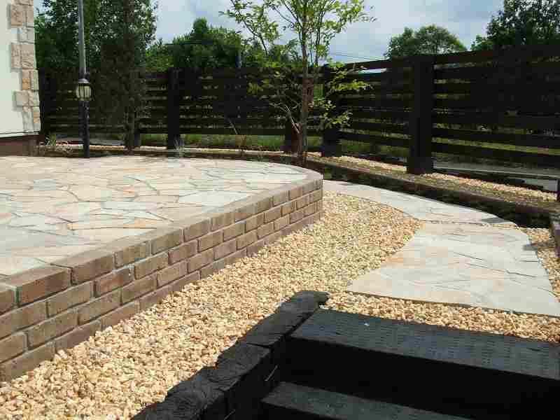 もともとウッドデッキと芝生でしたが、ウッドデッキの破損を機にクォーツサイトのテラスとガーデンパスを広めに作りました。管理面のことを考えつつグリーンスペースは確保した上で、モスを植栽しました。