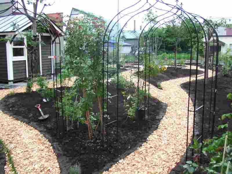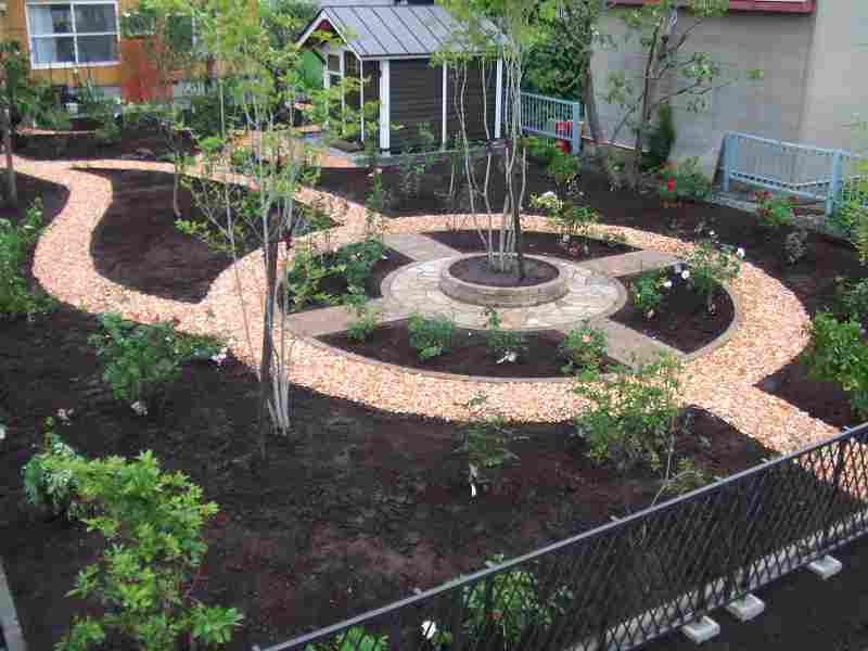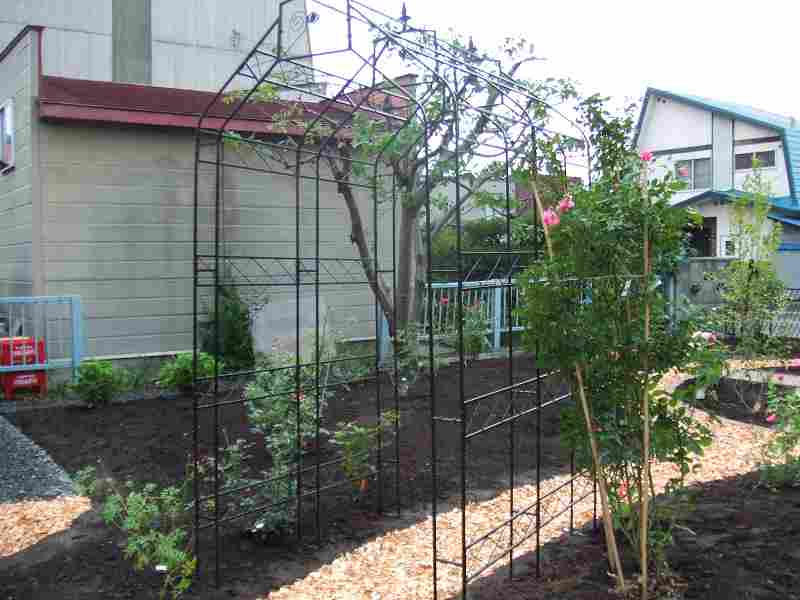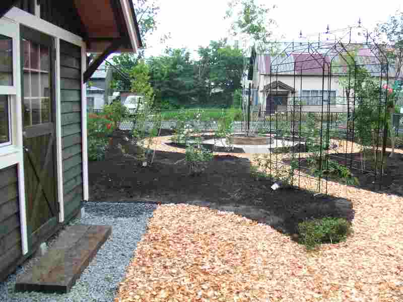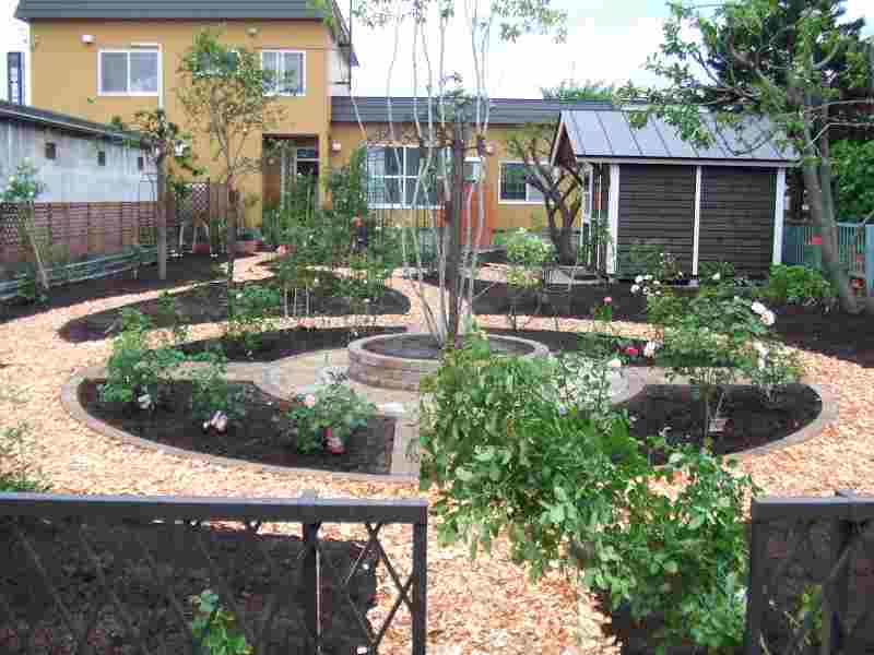 バラと宿根草を中心にした庭にしたいというご希望でしたので、出来る限り植栽スペースをとり、ガーデンパスで庭の中を色々な角度から見えるようにしました。