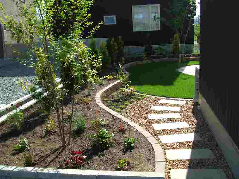 | お客様のご希望で、極力手の掛からない庭ということで住宅併設でテラスがあったのですが、更に下に広めのテラスを設けそのすぐ横には狭目ではありますが、芝生を敷き子達も広々と遊べるスペースにしました。他の部分は、化粧砂利やグラウンドカバーで、雑草取りなどの手間が掛からないようにしました。坪庭に関しては、日中見ると何の変哲もないクリアな筒ですが夜になると、白く輝きを放つのでした。 |