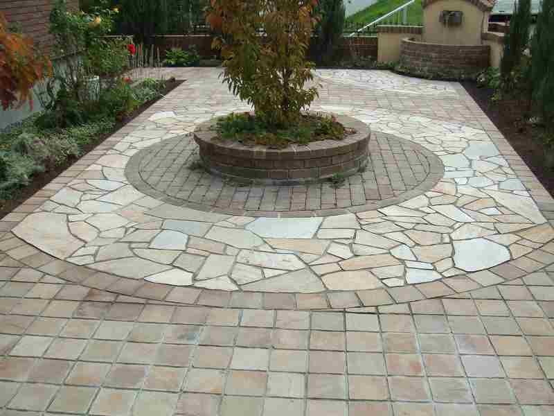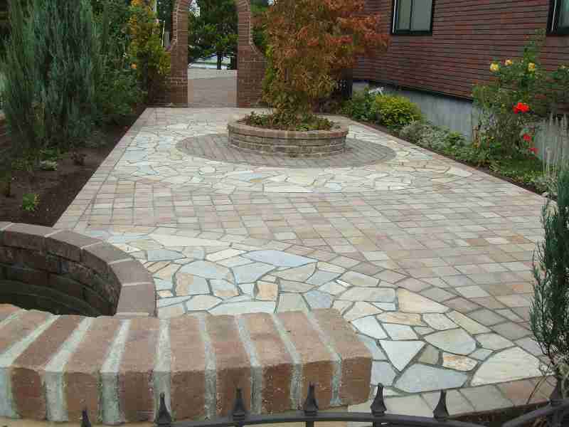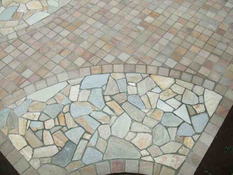 | 石畳や鉄平石の張っている部分は全て芝生でしたが、オーナー様が芝生の管理に悩まれていたので、今回リフォームすることになりました。但しもともとあった植栽スペースは、そのままにしているので芝生がなくなった分緑に欠ける部分もありますが、このテラス全体が樹木や花に囲まれていることは以前と変わりありません。 |