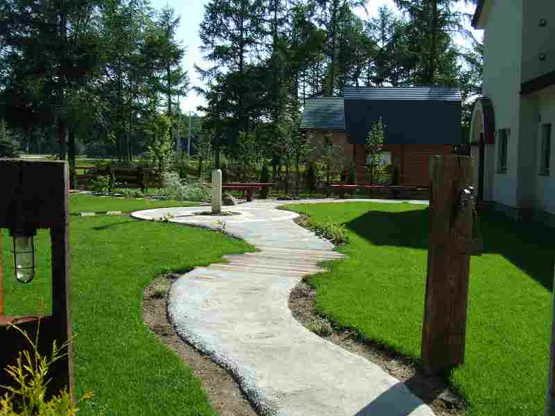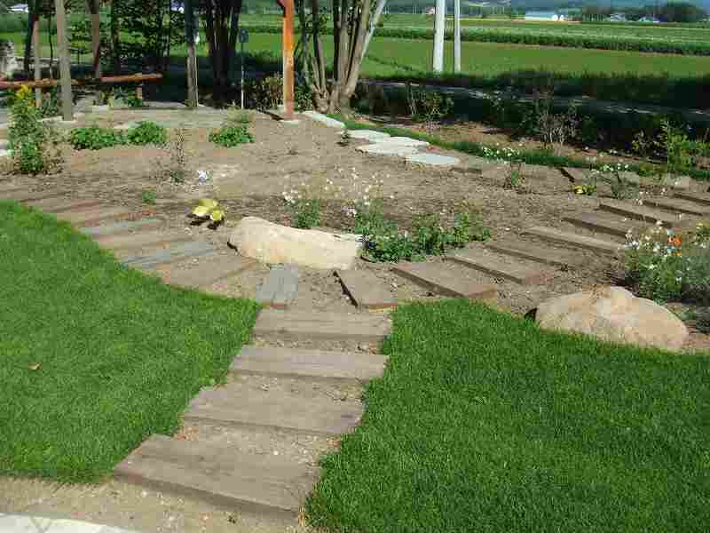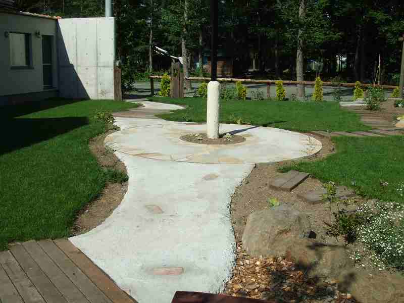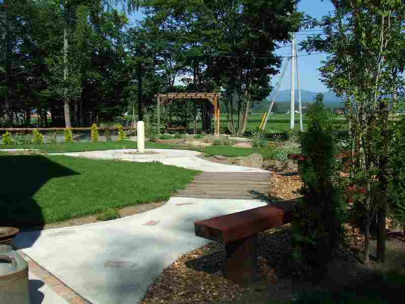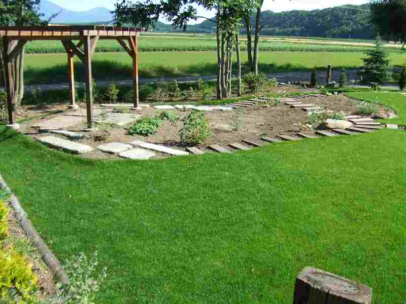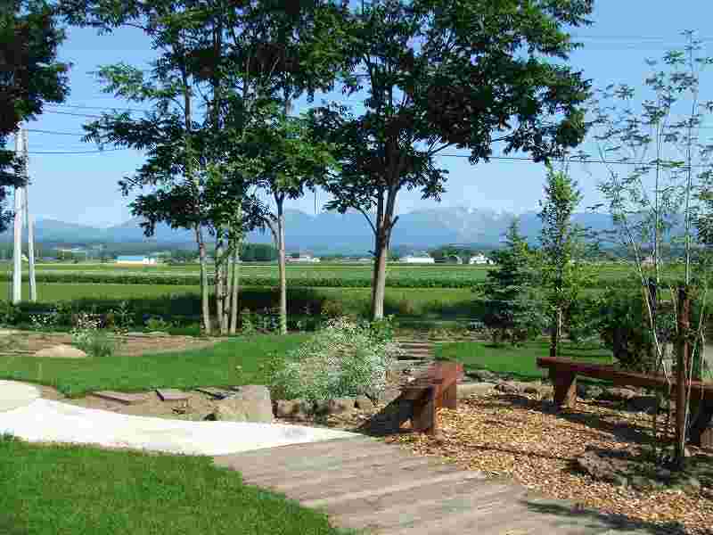 白金のたもと美瑛町美沢共生に店を構えるイタリアンレストランのオステリア・バローレ様。お料理はもとろんのこと、オーナー様がこだわり抜いて造ったお店に引けを取らないように尽くした庭です。樹木・花類・芝生以外に関しては、オーナー様の意向もあり木材・石・コンクリートなどは全て現地であった古材を再利用しました。材料の塗装などは全てやって頂き、オーナー様との合作の庭となりました。(材料の再利用の仕方はECOガーデンで紹介しています)お店の中からは、全ての席から十勝岳が一望でき、その手前にはお庭!このようなロケーションとお料理を楽しめるお店はなかなかないと思います。