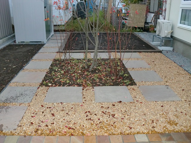 道路に面したお庭でしたので、ウォールでしっかりとプライベートを守り決して閉塞感が出ないように塀は高すぎず低すぎず。一見植栽スペースが少ないように見えますが、庭全体を取り囲むように植栽スペースも充実しています。