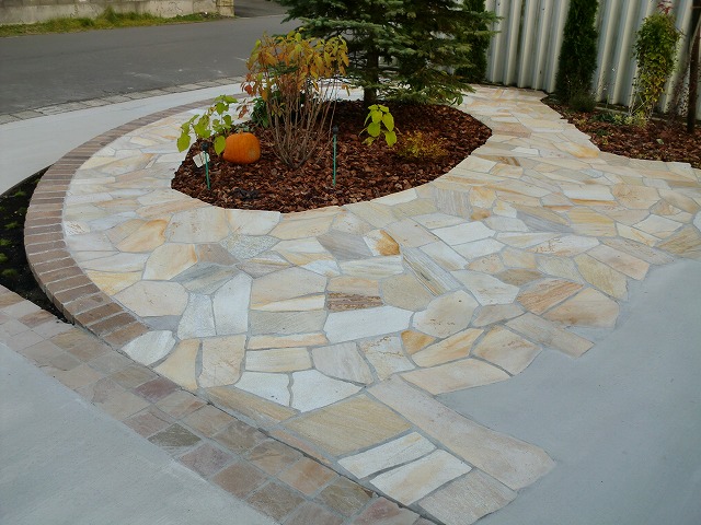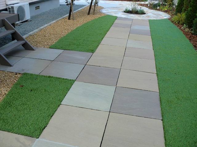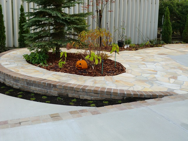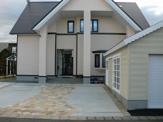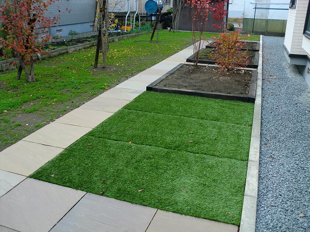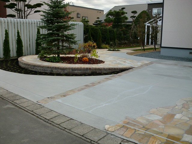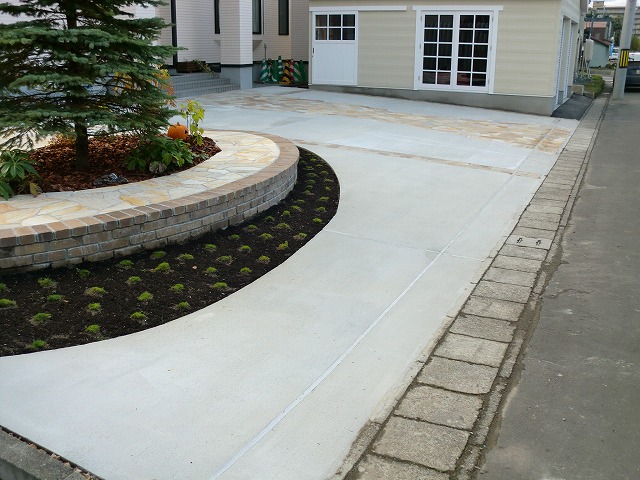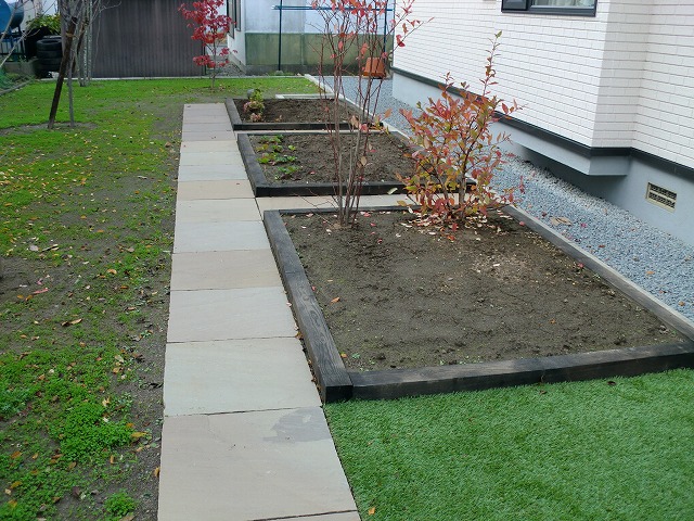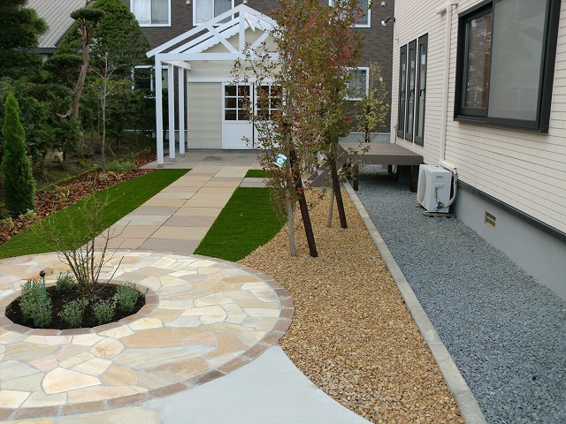 広い敷地の中で植栽スペース、メンテナンスのことを考え出来るだけお客様のイメージするものに近づける庭にしました。フロントはカースペースがメインになっていますが、植栽スペースもしっかり作り下草が楽しめるようになっています。メインの庭も植栽を充実させて緑に囲まれた空間となっています。