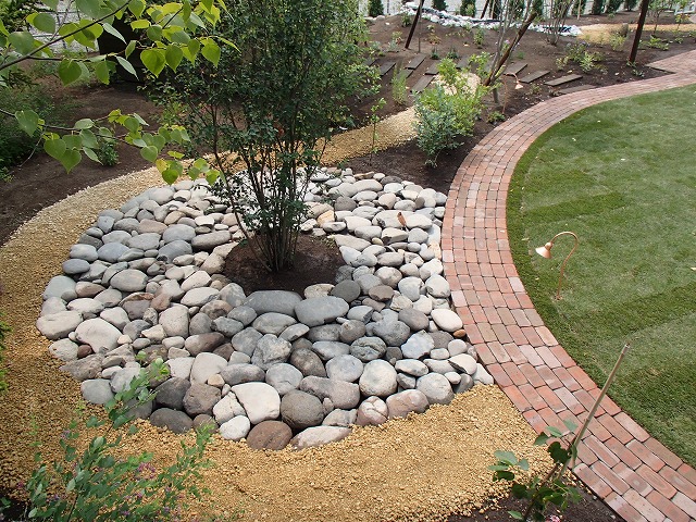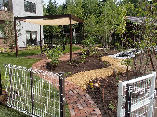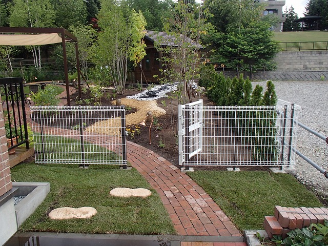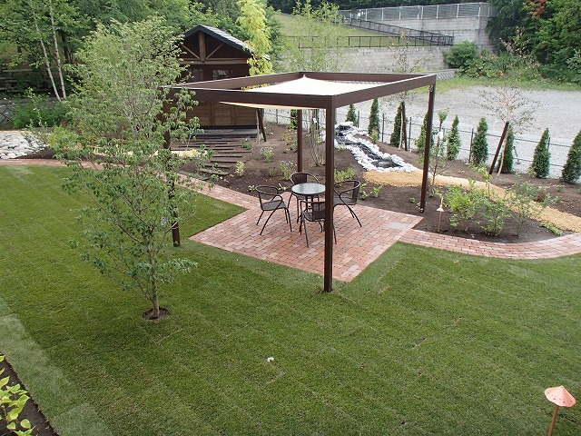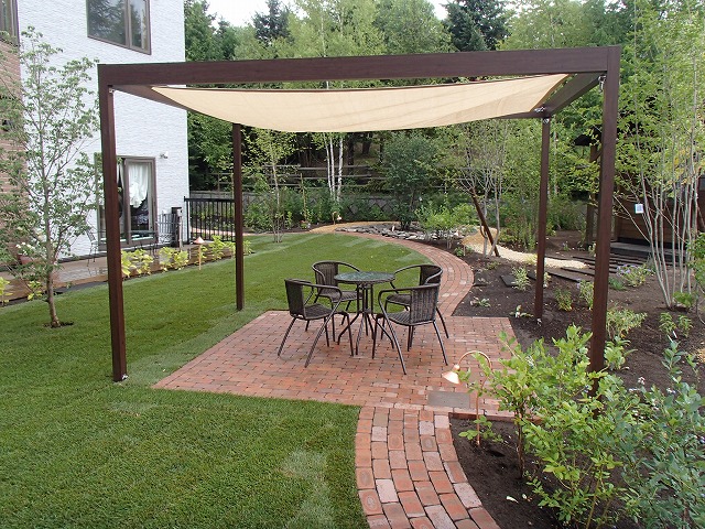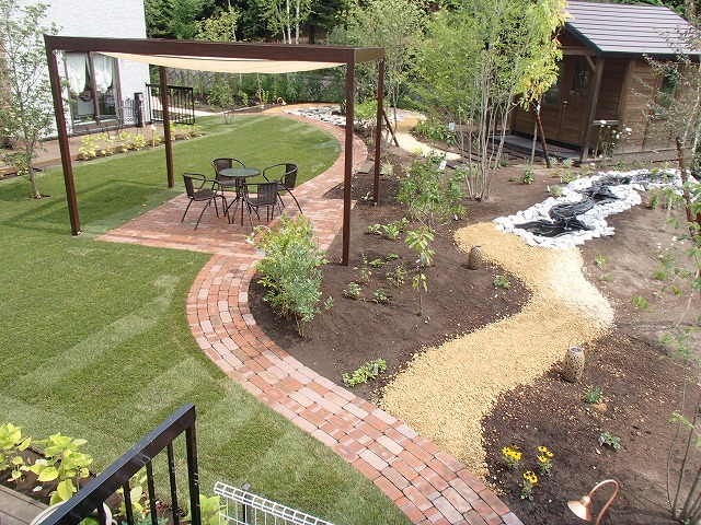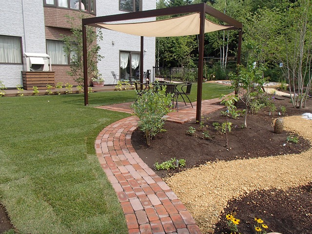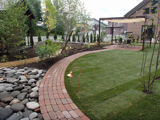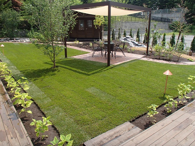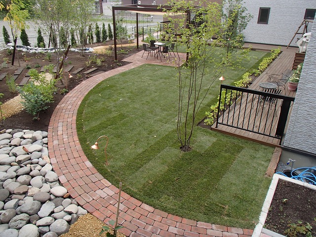 広い敷地にはハードスペースよりソフトスペースを多く取り入れました。芝生とテラス・ガーデンパス以外は植栽スペースとなっています。樹木の植栽も多めにし、住宅街での中で心林浴が楽しめます。