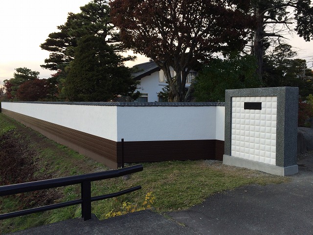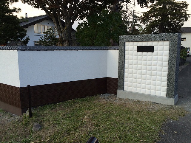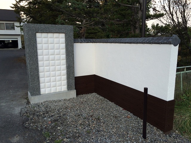 30数年前に作った歴史ある塀の化粧直し。元々積んであった瓦を生かし現代の商材と合わせた塀に。世代を重ねた塀に仕上がりました。