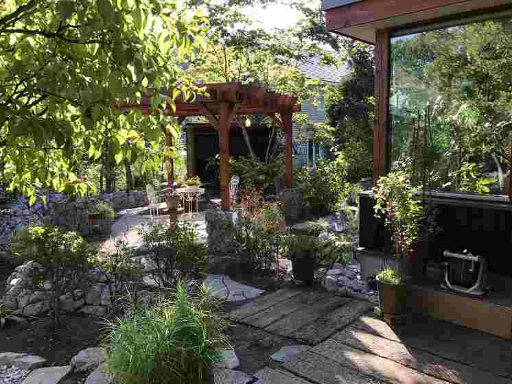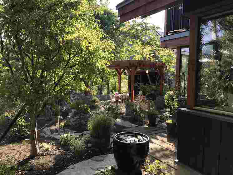 広い敷地に元々あった原生林も生かしながらのお庭です。