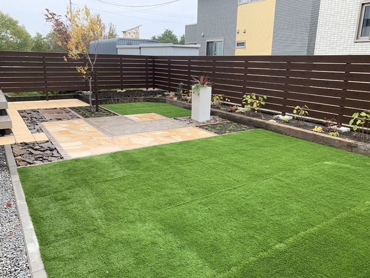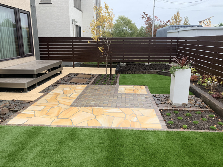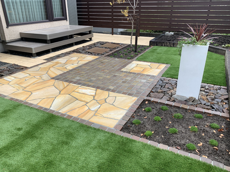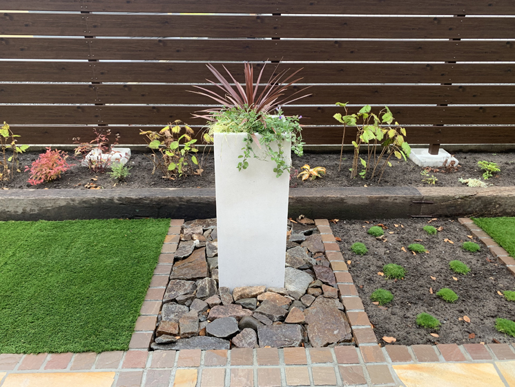メンテナンスは出来る限りしないようにしていますが、要所要所に緑のスペースを設けています。 ビフォーアフターへ